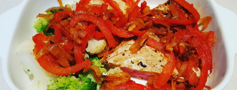 Tuna Steak with Smokey Peppers and Onion